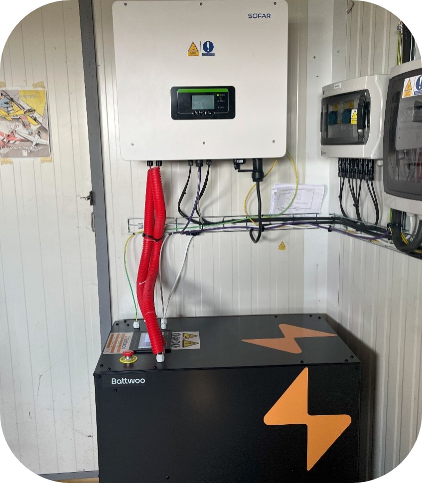 Battwoo a installé une armoire de stockage stationnaire d’une capacité de 35 kWh et d’une puissance de 23kW.
